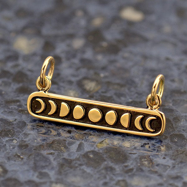 Phases of the Moon Pendant Festoon - Bronze. This etched and oxidized celestial jewelry pendant represents all of the lunar phases, as the moon waxes and wanes from New Moon to Full Moon. Each phase of the moon has its own associated meaning. New moons are for beginnings, for example, while the waning moon is believed to be a good time for banishing things, or clearing negative influences.