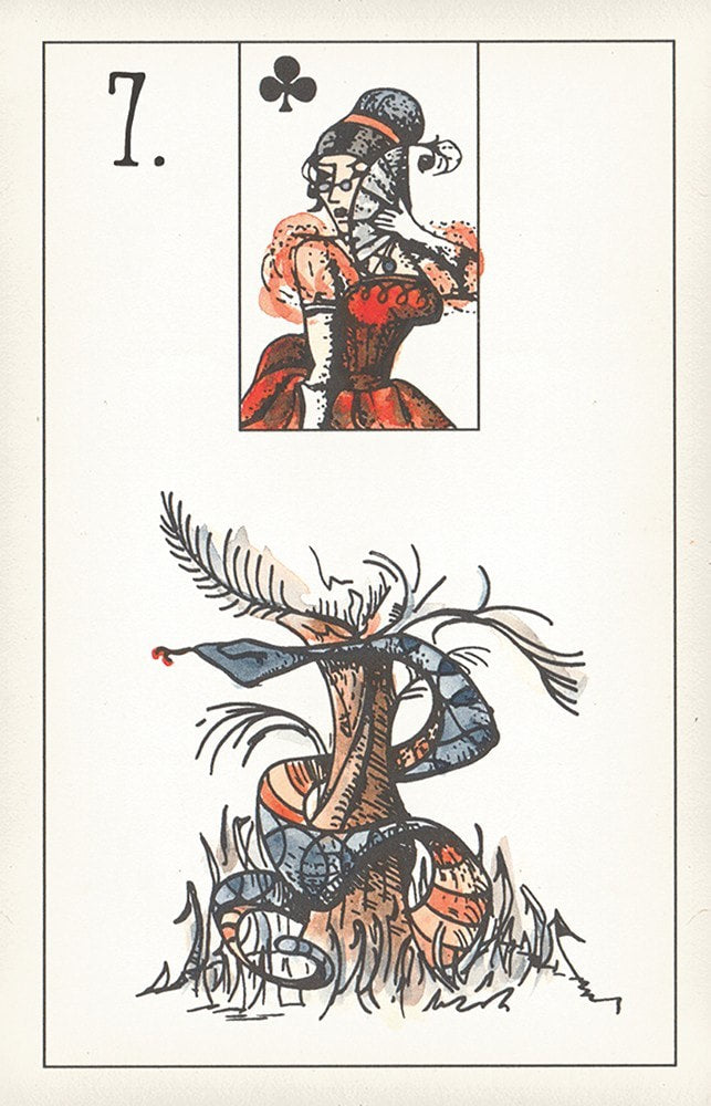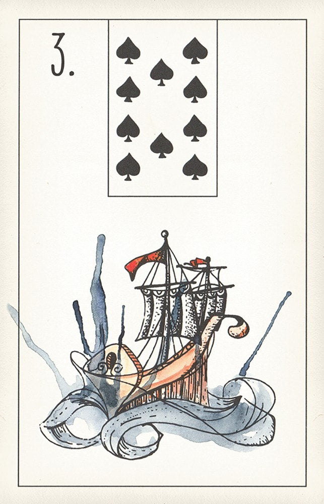 Maybe Lenormand honors the Lenormand tradition with stylized illustrations that convey the core meaning at the heart of each card. Expanding the 36-card Petit Lenormand, designer Ryan Edward has created 16 additional cards to complete a 52-card pack, following the heritage of fortune telling cards based on playing card decks. Set includes 72-page illustrated guidebook with keywords, meanings and instructions for reading with either 36 or 52 cards.