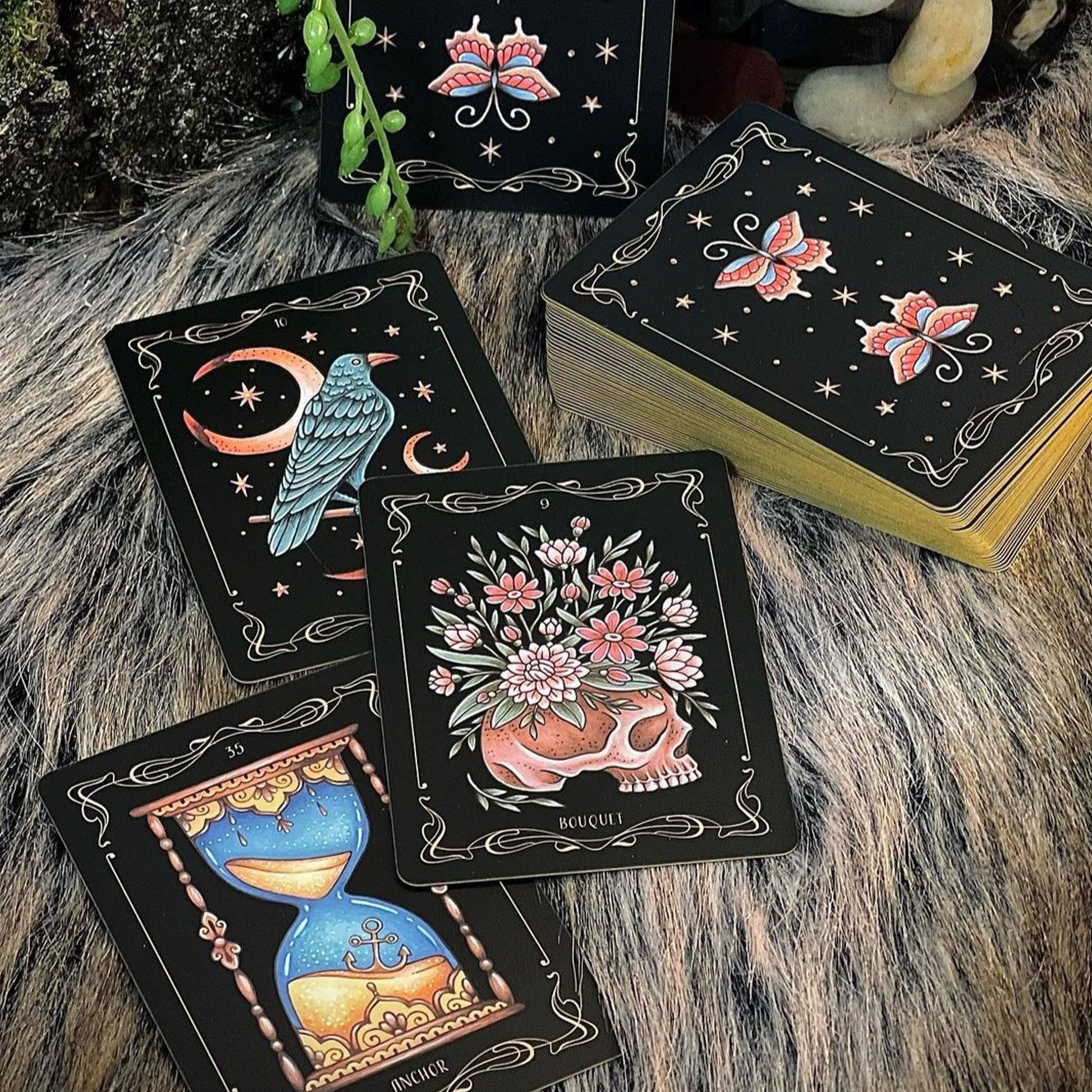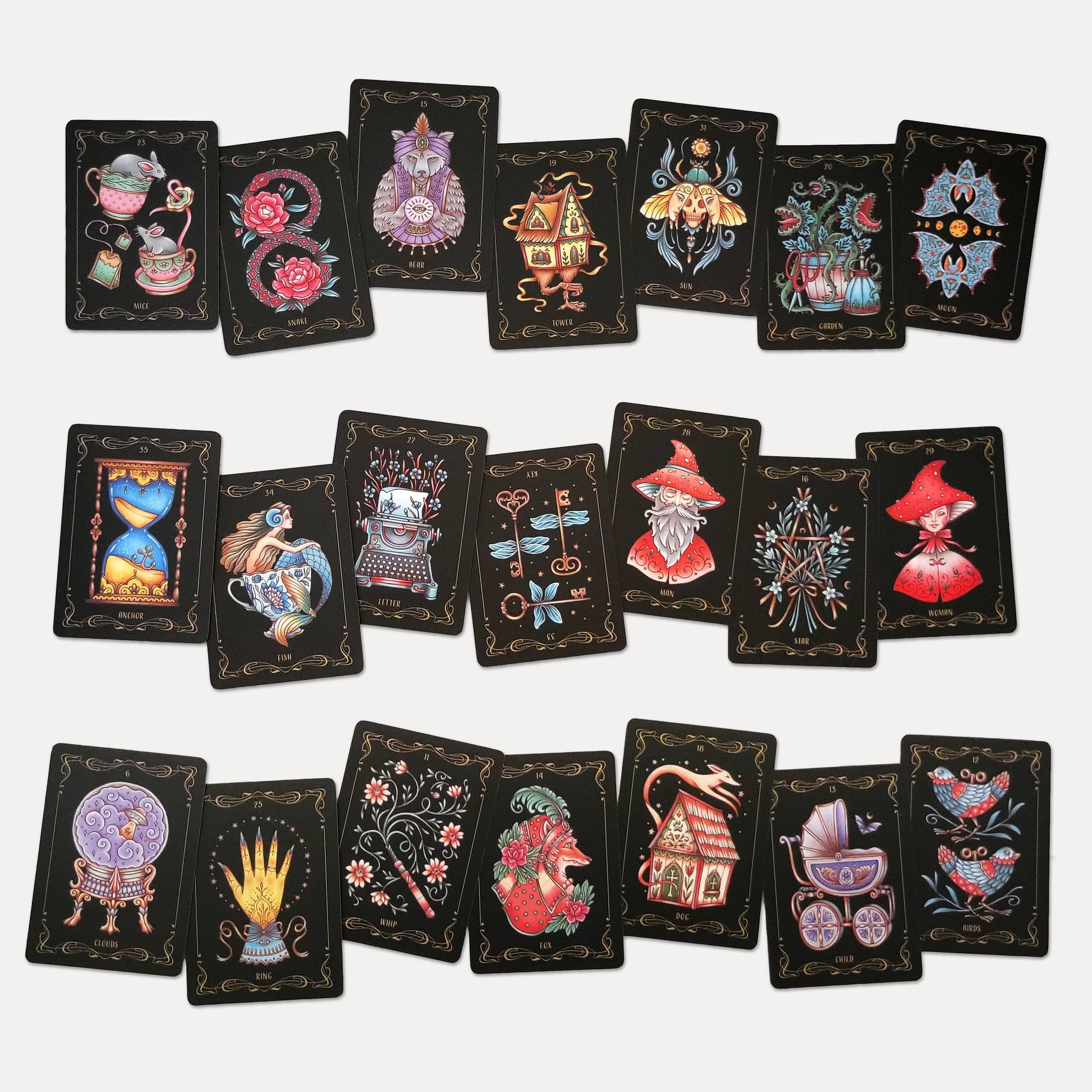 DELUXE EDITION: Includes 36 poker-size cards (2.5" by 3.5") with original hand-painted designs. An instructional booklet with keywords, meanings, and fun facts and a velvet lined rigid box (3.75" by 4.75"). This special edition features 350gsm cards with a luxurious matte finish and gold edging. The box is padded with a black velvet insert and makes a great collector's piece that will last for years to come.