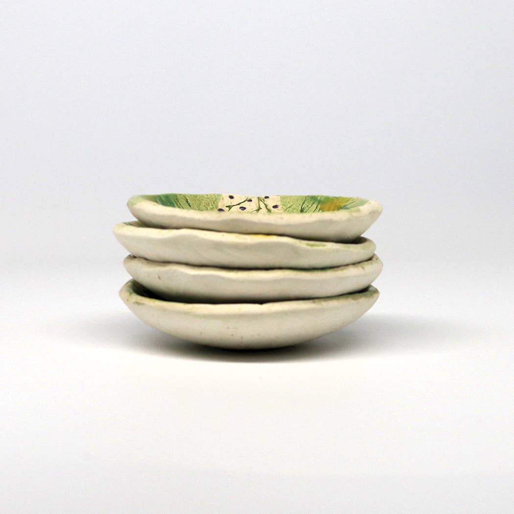 Great for trinkets, jewelry, pins, coins, or those important little doodads that are easily lost or misplaced. This mini bowl is also great as a teabag or teaspoon rest, a pinch bowl or condiment bowl, let your imagination be the guide!