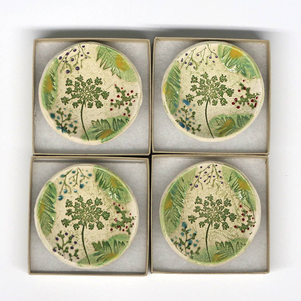 Pottery Dish Bowl - Pressed Flowers Handmade USA