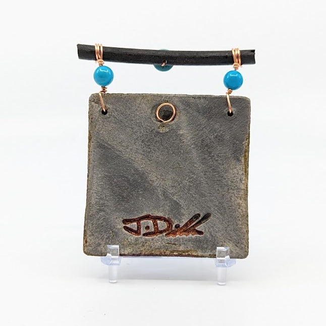 Measures approx. 3.5" tall x 2.5" wide. Copper Loop on the back for hanging.