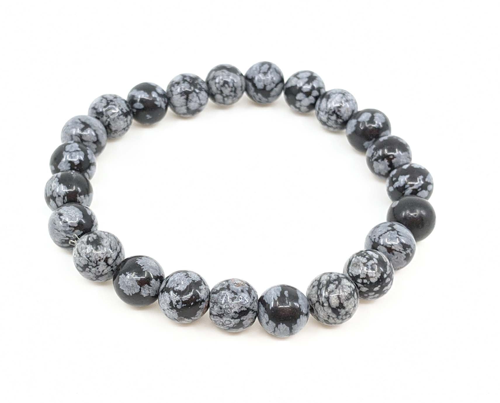 Stretch Bracelet made with 8mm round Snowflake Obsidian beads.